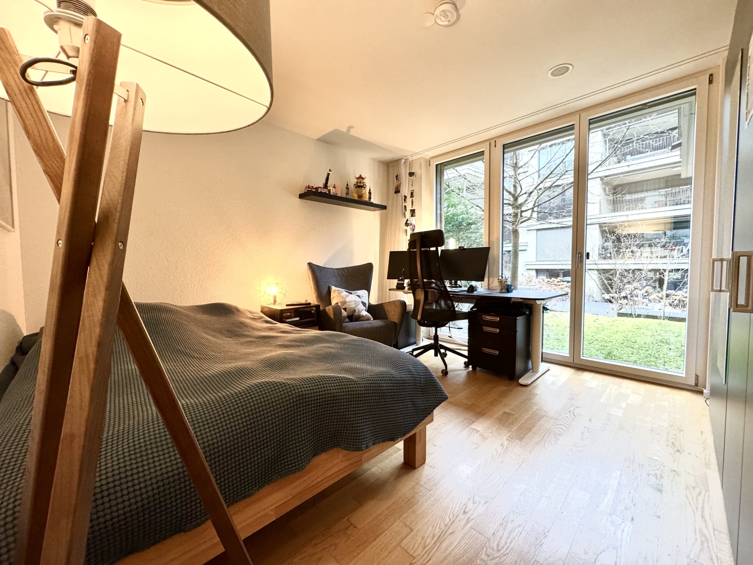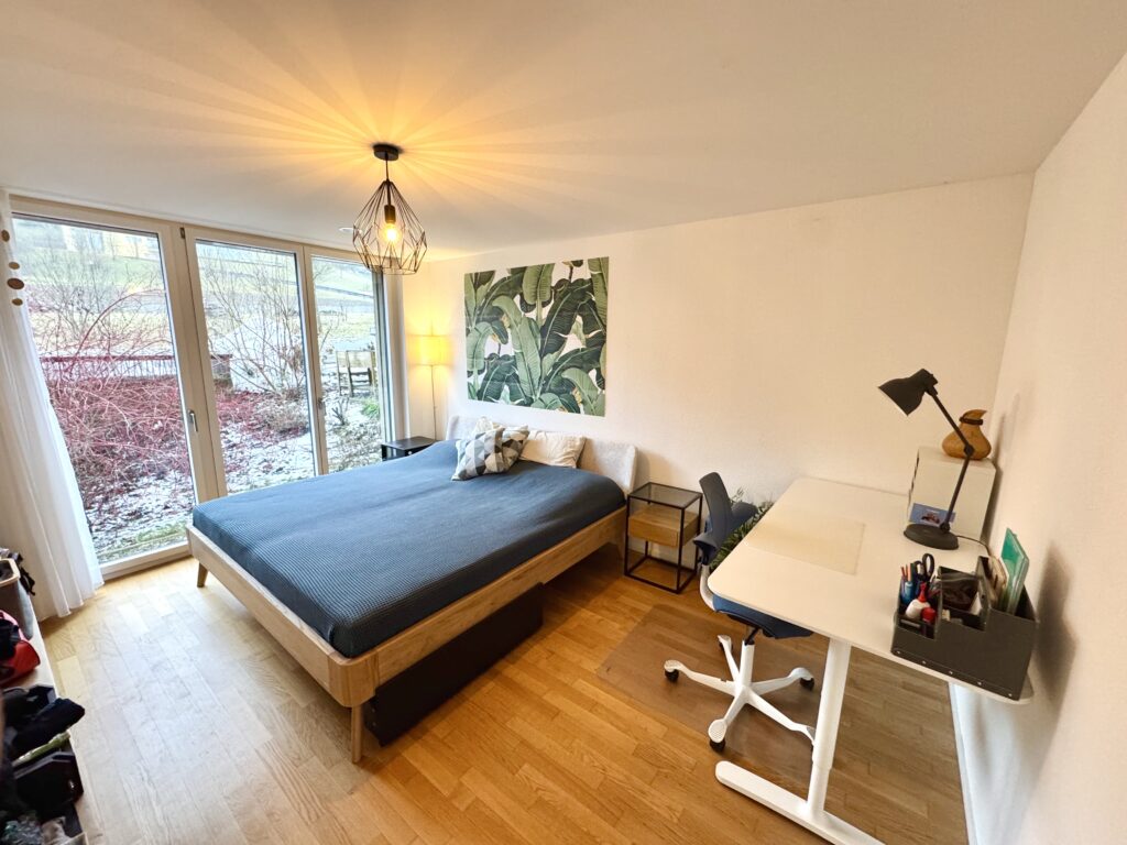 Das zweite Zimmer eignet sich ideal als Kinderzimmer, Büro oder Gästezimmer. Es liegt nahe beim Gästebad, welches mit begehbarer Dusche und WC ausgestattet ist.