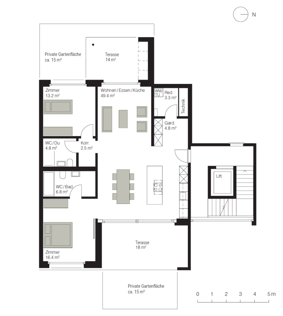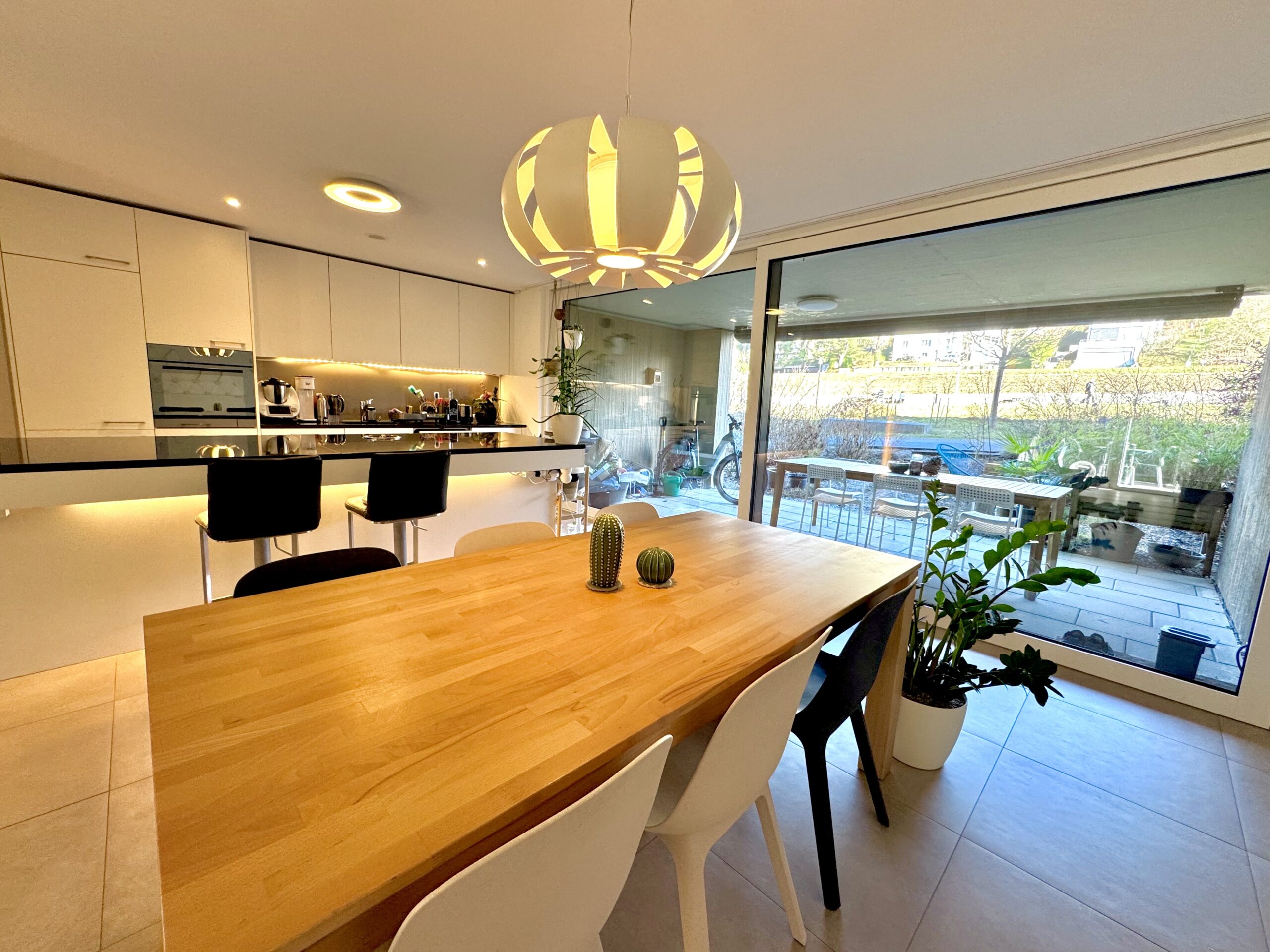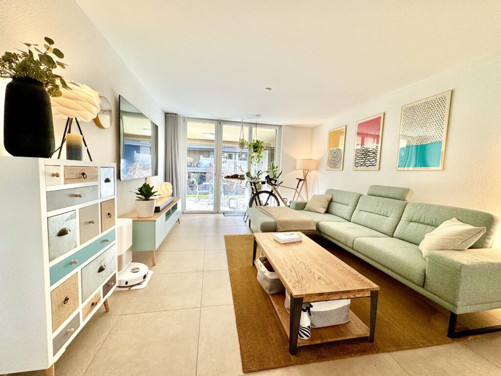 Diese moderne Gartenwohnung vereint Grosszügigkeit, Ruhe und zeitgemässen Komfort. Auf rund 100 m² Wohnfläche entsteht ein Zuhause, das durch seine Offenheit, das natürliche Licht und die durchdachte Raumaufteilung überzeugt.